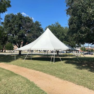 Pole tents feature a peaked appearance at the top, created by central interior poles. We offer pole tents in a variety of sizes, and they're a great choice for many budgets.